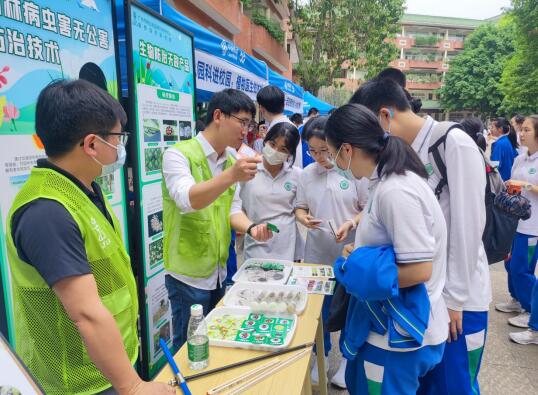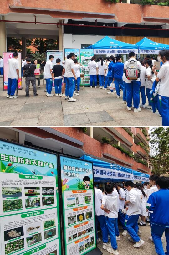 为充分发挥我院林业园林科学研究和科技推广专业职能作用,增强生态文明建设及科教融合意识,宣传我院的科普品牌,落实“五进五联”活动要求,推进“党旗插在项目上”攻坚工作和“我为绿美广州添光彩”工作开展,4月28日我院科技推广与培训部党支部联合植物保护研究所党支部、树木保护中心党支部参加广州市第七中学教育集团2023年科技文化节,开展“‘红色园科’进校园,植物医生做体检”主题科普活动。