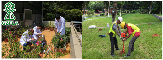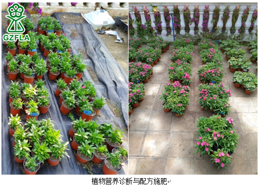 园林植物的营养不足及施肥技术不当,影响优秀景观的呈现。正确的养护和施肥技术,不仅提高肥效,促进园林植物的良好生长,还减少施肥对园林环境的污染,降低人员的劳动强度,提高工作效率,节省成本。为改善城市绿地乔、灌、草本营养缺失,我院依托《名优花卉(一品红、玫瑰海棠)的营养调控技术研究》、《花城特色新优花卉的培育与推广应用》、《天桥簕杜鹃营养调控技术研究》等课题,建立了营养调控实验室,通过对园林植物形态、生理生化、营养等指标并结合立地土壤理化、病虫害等,建立一套植物营养诊断程序和综合评价体系。针对不同园林植物不同营养问题,利用有机物、复合肥及生物有机肥等配制专性肥料,因土施肥,均衡施肥;利用深根施肥布施促根剂和微生物菌肥,调控深层土壤养分;通过植物表面施用营养透气袋、吊针营养液等,调控植物体营养。这些技术已成功应用于古树名木及大树抢救复壮工作中,成功挽救了一批批濒危树木,为园林植物的生产栽培提供科学指导,取得了良好的经济效益。