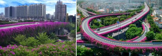 在国内首次建立了三角梅城市天桥绿化技术与工程体系,综合运用桥梁绿化植物品种筛选、专用基质配比、智慧管养等技术,高标准做好广州426座、约350公里的桥梁绿化管养,打造城市空中花廊,实现“四季常绿、四季有花”,广州桥梁绿化成为“花城广州”的重要城市名片。