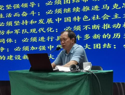 张丰清教授对习近平新时代中国特色社会主义思想做了系统全面的解读阐述,围绕在新时代更好坚持和发展中国特色社会主义、坚持党的全面领导、坚持人民至上、坚持敢于斗争、全面建成小康社会、坚持走中国特色强军之路、统筹发展和安全、坚持“一国两制”和推进祖国统一、以伟大自我革命引领伟大社会革命等二十个大方面进行了深入解读。