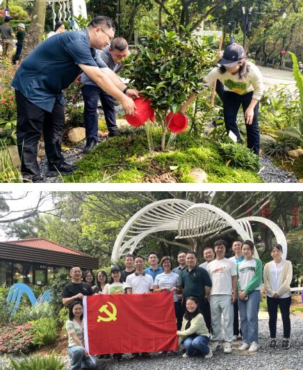 双方在鸣春谷景区共同种植了郎德木、黄钟花、茶花等观花灌木共计9株,以实际行动传递全民爱绿植绿护绿的理念。种植结束后,双方就鸣春谷景区日常养护技术、景区植物配置、新优品种栽培与推广、科普活动合作等方面工作进行经验交流,推动党建与业务互融共促。