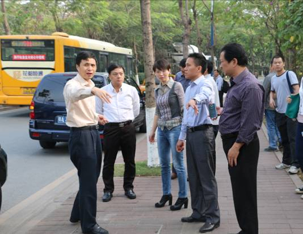 11月26日,杨国权书记、詹宇扬副局长在局园林工程处有关负责人的陪同下到大金钟路、白云大道和同泰路检查道路绿化养护工作。在听取了阮琳院长关于日常养护工作情况汇报和实地察看后,杨国权书记指出,要进一步加强道路绿化日常养护工作,对同泰路周边的养护难点、盲点要及时落实整改,并对上述路段的景观优化提出建议。
