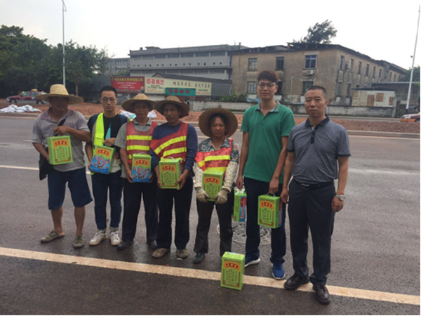 7月12日,吴俭峰副院长来到嘉卉公司新港东路新洲码头路段及机场高速等在建在养项目工地,慰问坚守在高温一线的员工,带来殷切的问候和浓浓的关怀。