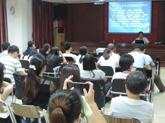 8月12日,嘉卉公司邀请了张乔松研究员对全体员工进行了《花卉布置技艺浅谈》专题业务培训。张乔松研究员就公司 “立体绿化花箱组景竞赛”作品,实例一一点评。张乔松研究员对比国内外花卉布置实例,分析了花卉布置配置原则及色彩搭配在植物配置方面的重要意义。员工们纷纷表示受益匪浅、收获颇丰。