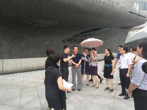 8月10日,广州市委宣传部朱小燚副部长在广州市林业和园林局吴敏副局长、陈迅副局长、我院阮琳院长等陪同下对嘉卉公司负责实施的2017年国际花艺会展大剧院现场的立体花坛布置进行考察指导。