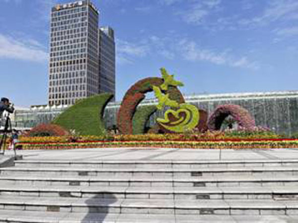 东站广场立体花坛布置(花坛名称:乘风破浪)