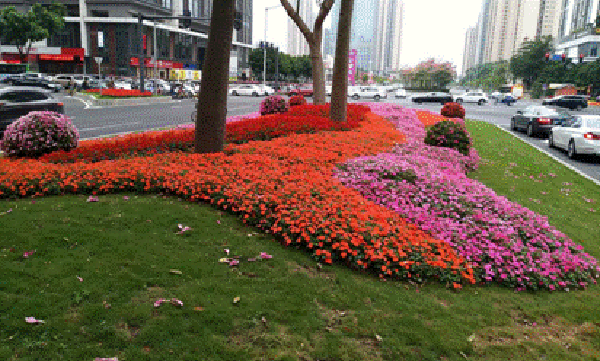 为更好的提升天河区园林景观效果,广州市名卉景观科技发展有限公司负责承建的花带花境项目,以及由广州市林业和园林科学研究院与广州市名卉景观科技发展有限公司共同负责打造的桥梁花箱绿化项目已全面完成,其中花带花境种植有10006㎡,共计有华夏路、黄埔大道、体育东路、天河路、金穗路、华观路等主要交通道路,使用时花有凤仙、进口长春、矮牵牛、格桑花、狼尾草、孔雀草、香彩雀等20余种植物花卉。花箱、桥梁隧道摆花项目中:花箱有1500多个,桥梁种植簕杜鹃有4150米,品种使用了粗肋草、观赏谷子、红掌、进口长春、新几内亚凤仙等新优进口植物30余植物花卉品种。繁花似锦、姿态优美的花海遍生广州天河大街小巷,绚丽的花潮衬托得城区繁华街景更加热闹欢腾、高楼大厦更加雄伟壮观,一个个花美色美、造型独特的花箱在大街小巷随处可见,使得整个天河区满地鲜花浪漫、璀璨夺目,进一步提升广州天河区的景观效果,同时也为即将到来的财富论坛营造良好景观氛围。