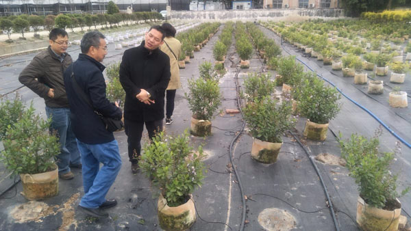 刘永金教授一行仔细参观了东平新优园林苗木基地,就基地苗木中试生产、自动化灌溉、布局、科研成果转化等问题与植物所科研人员进行探讨;随后参观了观赏植物种质资源圃,对于以园林造景形式收集植物资源,给予了高度赞赏。