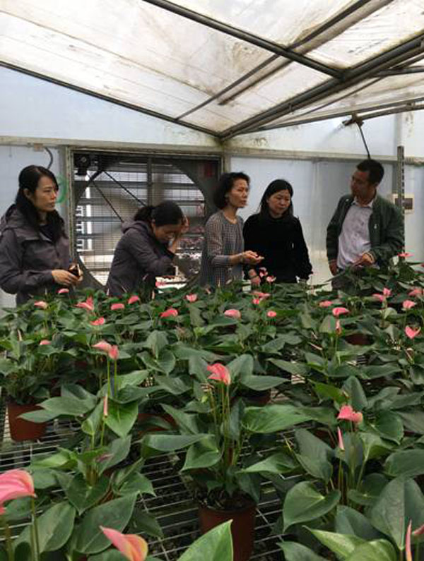 2018年4月18日,院党委副书记付红红到名卉公司从化、东平花卉生产基地调研。