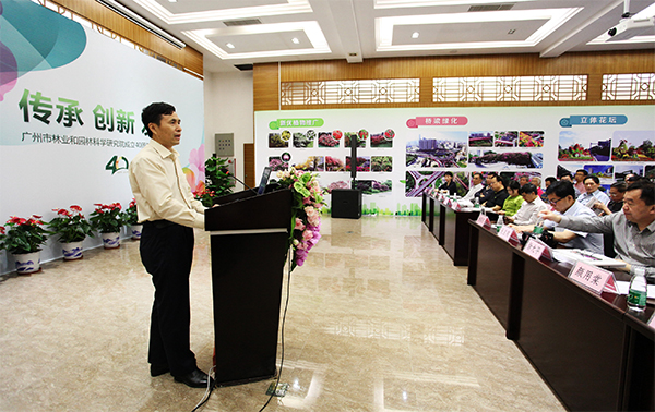 市林业和园林局杨国权局长为大会致辞,他指出,广州市林业和园林科学研究院(前身为广州市园林科学研究所)作为我国建立最早的市级园林专业研究院所,经历了40年的积淀和发展,形成了独具一格的研究文化,科研工作成效显著,尤其是在林业园林新技术品牌打造、成果转化等方面处于行业领先地位,为广州园林绿化事业发展、生态建设做出了卓越贡献。