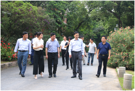 5月13日下午,贵州省惠水县县委书记万庆华、县委副书记王文旭一行来我院考察交流,市林业和园林局杨国权局长和詹宇扬副局长、我院阮琳院长等相关领导陪同考察。