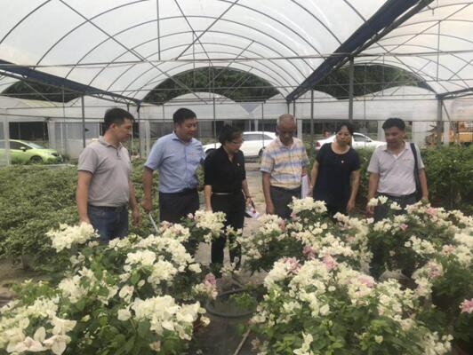 在我院刘悦明总工程师、白云苗圃余铭杰主任介绍簕杜鹃种质资源圃的建设情况后到生产大棚内体验簕杜鹃种植培育过程,对簕杜鹃种质资源圃建设实施推进过程中的苗木选种、培育扦插、栽培换盆、修剪造型、病虫害管理、水肥管理、花期调控、生长参数收集归档、成果转化运用等工艺流程相互交流。同时针对今年国庆全市的时花布置工作,听取了白云苗圃余铭杰主任对国庆时花种植生产工作的情况进展。