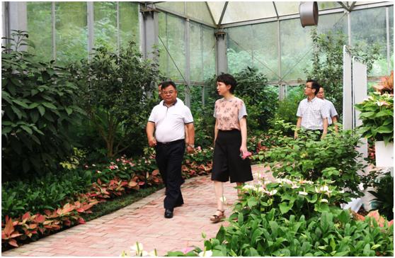 8月29日,郴州市政府肖正科副秘书长、农业农村局阳桂元副局长一行4人来我院考察花卉研究、桥梁绿化、花卉产业建设工作,我院阮琳院长、刘悦明总工程师、白云苗圃余铭杰主任陪同考察。