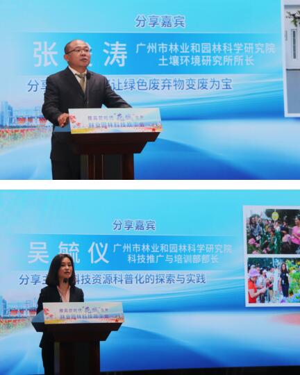 故事会现场,市园科院阮琳院长以“‘接地气’的科研助力花城品牌打造”为主题,分享了市园科院“传承·创新·发展”的历程,来自市园科院专业技术团队的9位嘉宾分别从种质资源创新、立体绿化、树木保护、生态绿碳、科普为民五大方面讲述了林业园林科技人潜心研究、忘我奋斗的故事。