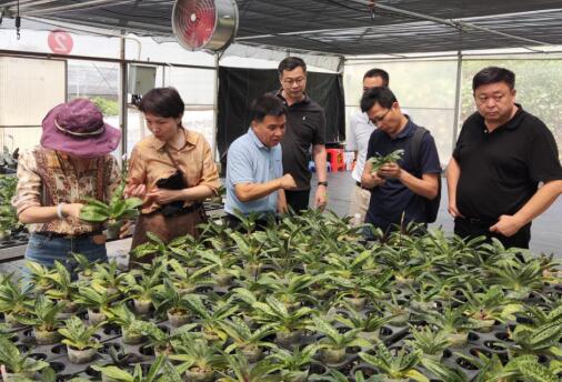 9月20日上午,市林业园林局科技处江定钦处长到我院高山花卉基地开展兰科植物科研与产业化生产推广应用工作调研,我院阮琳院长、代色平副院长、刘悦明总工程师、首席专家刘国锋参加调研。