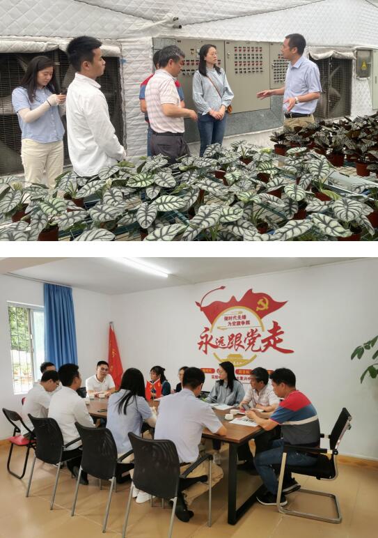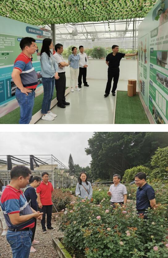 吴刚院长一行参观了我院陈田基地三角梅、月季展示馆、三角梅、月季资源圃、种苗育苗、生产大棚,详细了解我院在三角梅和月季种质资源收集、新优品种培育、耐热耐旱品种筛选及推广应用、新优花卉苗木培育和推广应用等方面的科技成果,互相交流了植物种质资源收集保育经验,新优品种培育及应用推广技术。吴刚院长、吴熙泉经理等人表示将学习借鉴我院成功经验,加强与我院交流合作,推进产、学、研更好融合发展,助力大湾区生态建设和城市绿化发展。