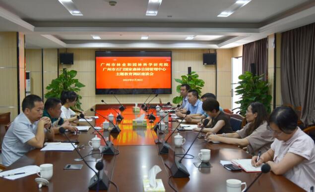 为深入贯彻落实党的二十大精神和党中央关于在全党大兴调查研究的决策部署,扎实开展学习贯彻习近平新时代中国特色社会主义思想主题教育,5月30日上午,广州市石门国家森林公园管理中心党委组织带队到市园科院开展主题教育调研,市园科院党委班子相关成员、办公室、种苗研发中心、工程技术中心相关负责人参加座谈。