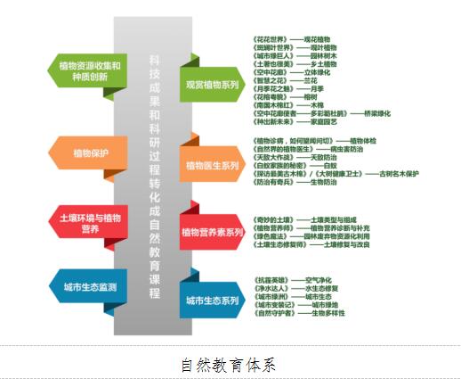 近年来,市园科院以习近平生态文明思想为指导,以强烈的使命感开展一系列自然教育工作。目前已初步构建起多层次、分众化的自然教育体系,初步打造成可展示生物发育全过程、科学研究全过程、公众参与全过程的沉浸式生态科普教育场所。以植物资源收集和种质创新、生物多样性保护、土壤生态修复、有害生物防控、树木保护等方面的科技成果为背景,研发了“观赏植物”、“植物医生”、“植物营养师”、“城市生态”等四个系列 25 门课程,着力打造“听见花开”、“植物医生”及“小小育花匠”等自然教育品牌,为公众提供提供了主题教育课程、自然教育进校园、进公园、大型公众活动、参观导赏等多彩纷呈的教育服务和品类丰富的自然教育产品。