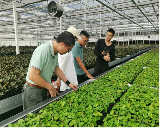 曾焕忱副所长一行实地参观了我院自动化智能盘床控制系统育苗温室、自动化智能种苗生产线、以及种苗、花卉苗木示范生产基地,了解我院设备资源优势、科技实力、产业化生产以及推广应用情况。双方围绕自动化先进设施设备应用、林木品种筛选、引种以及林木示范生产工作等方面进行深入交流,表示愿在新优园林植物选育及示范生产方面加强沟通与合作,助力林木良种繁育和林业经济发展。