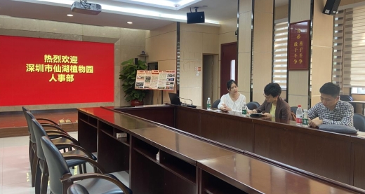 2023年9月27日上午,深圳市仙湖植物园人事部部长吕丹同志一行2人到我院调研交流,院政工部负责人杨小玲参加共建座谈。观看了院试点工作汇报片后,双方围绕党建与人事工作两个方面,针对党建工作中的创新举措、党建引领业务攻坚、人事考核体系建设、职称评定、人才规划等方面的制度设计和实际操作等内容开展座谈。