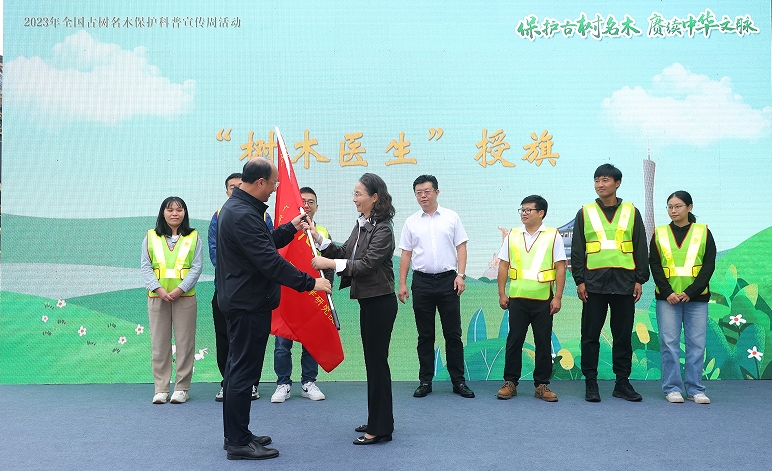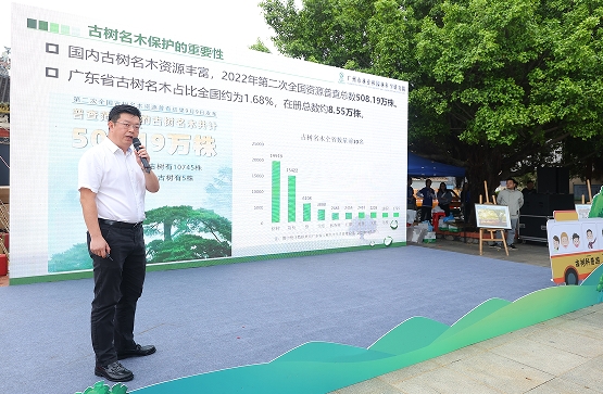 为响应全国绿化委员会开展全国古树名木保护科普宣传周活动通知的要求,深入贯彻习近平生态文明思想,10月21日,广州市在白云区龙归街南村孖祠堂外广场举办了一场主题为“保护古树名木 赓续中华文脉”的古树保护宣传周活动。本次活动由广东省林业局、广州市林和园林局指导,白云区林长办、白云区城市管理和综合执法局 (白云区园林绿化局) 主办,市园科院院长代色平和副院长毕可可带领“树木医生”团队出席本次活动。