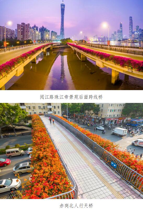 自2003年起,广州市林业和园林科学研究院一直致力于广州桥梁绿化建设,通过二十年不断的技术创新,建立了一套完备的桥梁绿化技术体系,形成了良种选育、花期调控、防寒抗冻、病虫害无公害防治、智能灌溉等先进技术,桥梁绿化水平全国领先。目前已完成400余座,总长度超350公里的桥梁绿化整饰,形成了极具特色的城市空中绿廊、花廊,是花城广州一道亮丽的风景线。
