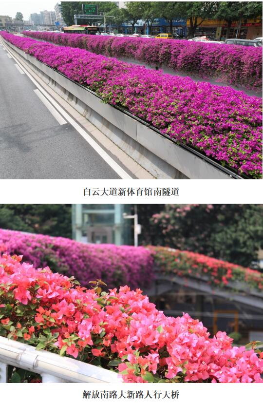 “梅生三角攀援上,伴着高枝一品红”、“一片明霞车障透,三分紫叶蕊含真”,这些诗词里都是对三角梅(簕杜鹃)的赞美。近日,广州各大天桥簕杜鹃不经意间悄悄的绽放了,一簇簇,一丛丛,花色丰富,炫彩夺目。有低调奢华有内涵的大红色,有妩媚艳丽风姿绰约的玫红色,有优雅浪漫的紫色,有唯美小清新的白色,有明媚俏丽的柠檬黄,有充满活力又不失温柔的橙色,还有如梦如幻的渐变色,为花城广州增加了丰富的色彩。各花色簕杜鹃斗艳争辉,繁花锦簇,绚丽多姿,交织成一条条靓丽的“空中花廊”,绚烂秋日羊城,引人入胜。