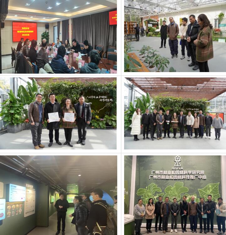 考察团一行参观了我院科技馆成果展示区、园林植物种质资源圃、园林科普馆等,深入了解我院在园林植物种质资源收集保育和创新利用、古树名木复壮等方面的工作情况。随后,双方开展座谈交流,代色平院长详细了解了香港特区在城市园林绿化树种选择方面所做的工作,并介绍了广州市相关工作情况,随后双方就古树名木保护、立体绿化、石缝树保护策略等方面展开深入讨论。