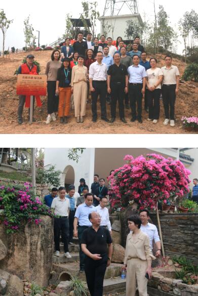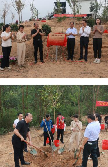 活动伊始,市林业和园林局党组书记、局长蔡胜,副局长、市园科院党委书记阮琳与花都区委政协、花都区“百千万工程”指挥部、花都区组织部等相关领导共同为“红联共建·绿美林”揭牌。随后,参加植树活动的人员挥锹铲土、扶苗培土、围堰浇水,合力种下市园科院创新研发的大花荣耀木、粉花蒂牡花等新优花卉品种,引种保护的火力楠、中国无忧花、木棉等一批岭南特色乡土树种,打造“绿美林”,将市园科院新优植物品种释放到美丽乡村建设,促进市园科院科技成果走出院,融入村。