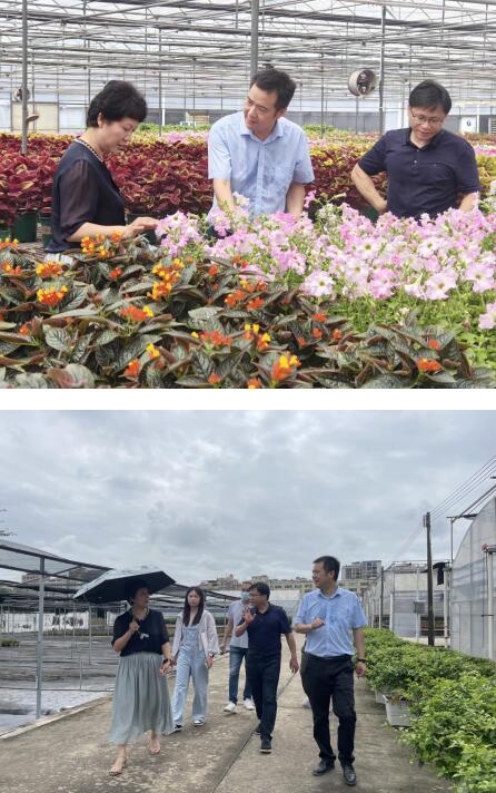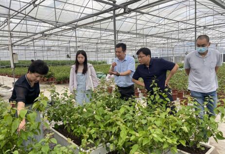 王蔚刚主任一行参观了我院广州系列矮牵牛和阴生观叶植物生产大棚及观叶植物在园林景观的应用示范点,实地调研了我院东平基地簕杜鹃生产养护状况,并结合实际应用对簕杜鹃冠幅、精细化养护、花期调控、病虫害防治等方面提出科学建议。