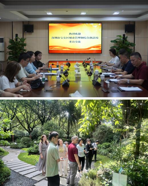 2024年6月18日,深圳市宝安区城市管理和综合执法局副局长刘宇晖一行到市园科院参观交流,我院总工程师吴俭峰、科技推广与培训部负责人、工程技术中心相关技术人员陪同。