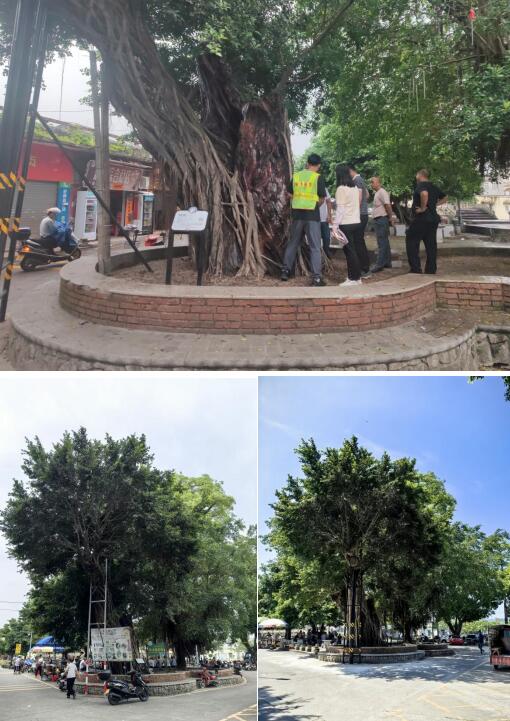 近日,我院“树木医生”团队前往江门市新会区,对双水镇东凌村380多年树龄的古榕树和三江镇良德冲村400多年树龄的古樟树进行保护复壮。