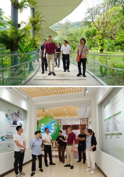 朱文健主任一行对市园科院在云萝植物园开展新优植物应用和景观提升工作情况进行实地考察,并参观了市园科院“城市自然家园”示范点和科技馆,了解市园科院在植物种质资源创新、新优花卉苗木品种培育、生物多样性保护、碳汇计量与监测等方面的技术研究情况。