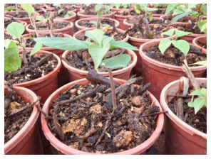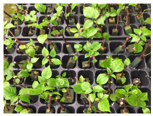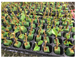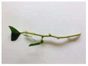 3. 插穗处理:插穗长度应控制在10~15cm长度为宜,可留两到三片叶子。上端切口应平切,下段切口应斜切。