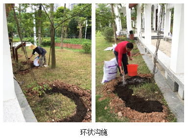 (2)放射状施肥法:以植物为中心向植物外緣顺着水平根系的生长方式挖沟,由浅而深。每株植物挖5~6条均匀分布在投影圈内的放射状沟,将肥料均匀施入沟内,结合灌水将肥料施于灌水堰内,随水渗入,供树根吸收利用,覆土填平。此法有点是伤根少,植物根系吸收养分较多。