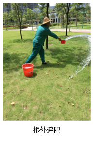 (3)穴状施肥法:在植物投影圈内按一定距离挖穴,穴的数量依植物冠幅大小而定,近外緣多些,近植物主干少些。穴的大下常为30cm左右,肥料施入穴内,覆土填平。此法简单、伤根少、根系吸收面积大。