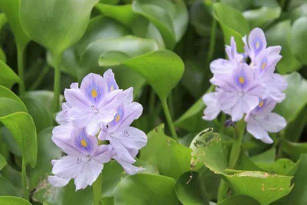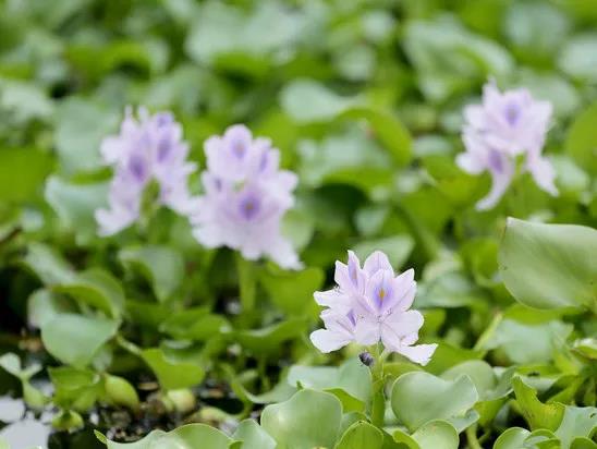 不过,“水上绿魔”凤眼莲也不是一无是处,它可以净化水质,早前也是用作猪饲料。现在在一些城市,还有北方地区,大家对凤眼莲还不太熟悉,觉得它只是一种普通的水生植物,很好养、开花也漂亮,所以又成了观赏花卉,放在水里养着还挺美。