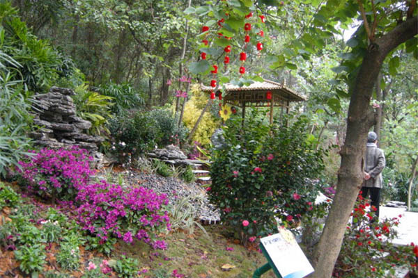●广州市动物园雁鸣湖畔的茶花园,面积约2000平方米,共有十几个珍稀名优种类。