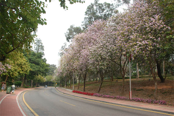 ●麓湖公园和麓湖路旁有宫粉紫荆近千株。
