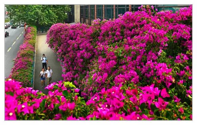 簕杜鹃来点缀,广州有条靓爆镜的紫红花道!