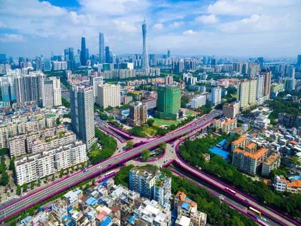 海珠区新滘西路和东晓南路交界的立交桥画面更觉震撼迷人。