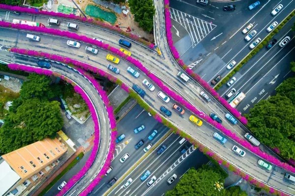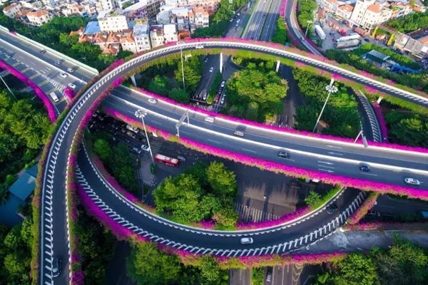 市内部分高架桥道路两旁的簕杜鹃渐次开放。去年10月,花城君经过海珠区新滘西路和东晓南路交界的立交桥时,拍下了路两旁簕杜鹃开放的盛况。