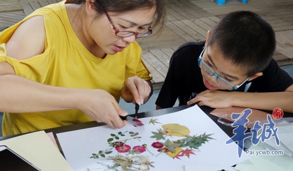 阳台植物除了可以装饰阳台,还可以通过创意化的手工再造,变成精致的工艺品。欣赏完植物,14个亲子家庭在园科院老师的指导下,学习了压花创作。