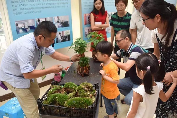 研究院工程师吴纯乐示范“景观DIY”引来小朋友围观