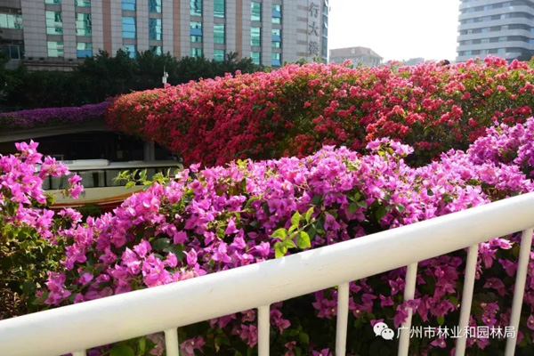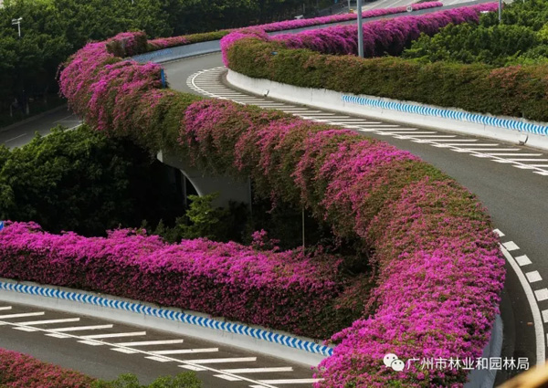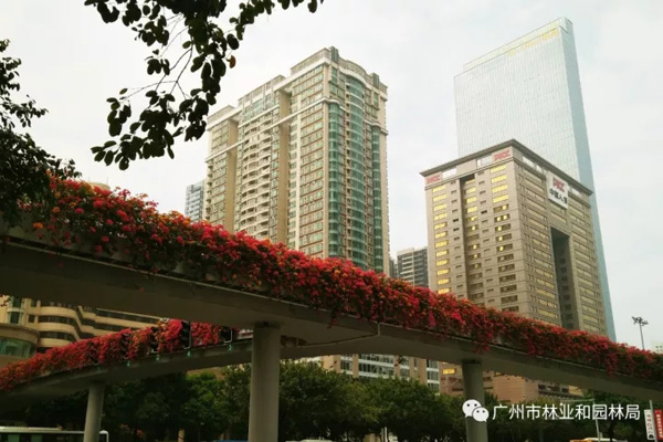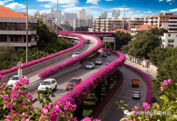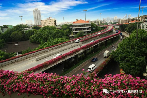 白天的绿叶繁花、晚上的霓虹光影,桥梁的绿化和亮化成就广州一绝。城市高架路不仅提供了便捷的交通,还打造出城市蜿蜒穿行的风景……目前,广州市共完成353座,接近309公里长的桥梁绿化整饰,增加绿化覆盖面积100多万平方米,形成了极具特色的城市空中绿廊、花廊,美化了生活空间、增加了城市特色,有效改善了城市居民的生活环境。11月的广州,繁花似锦,“空中花廊”频成“网红”。