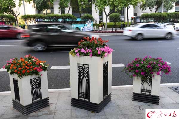 东风中路路边上的花坛花团锦簇。广报记者杨耀烨摄