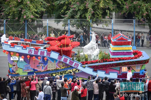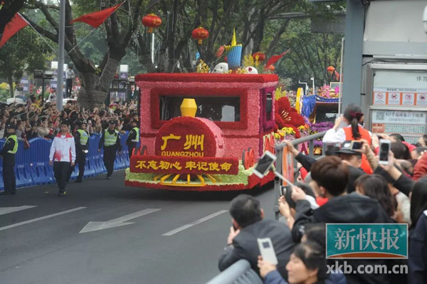 2月17日下午,由广州市旅游局和天河区政府联合主办的花车大巡游活动,在天河体育中心拉开帷幕。