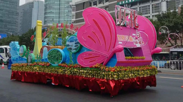 参加此次巡游的花车共有19台,其中主题花车1台,11个行政区分别制作1台花车,反映各区特色风貌和形象;南航、岭南、广汽、广药、长隆、正佳等6个市重点企业各制作1台花车,突出展现企业品牌形象和旅游特色,还特别邀请对口扶贫省份贵州制作1台花车参加此次巡游活动。