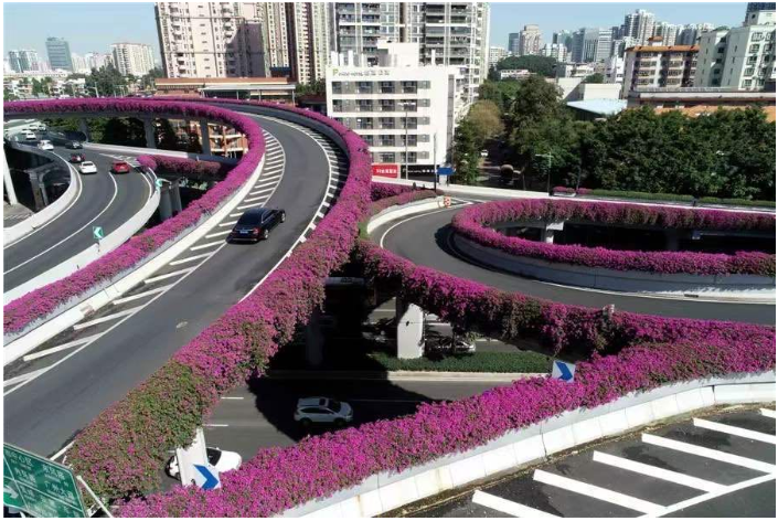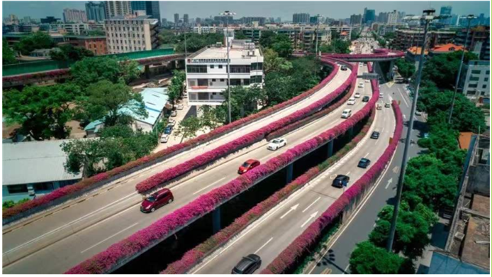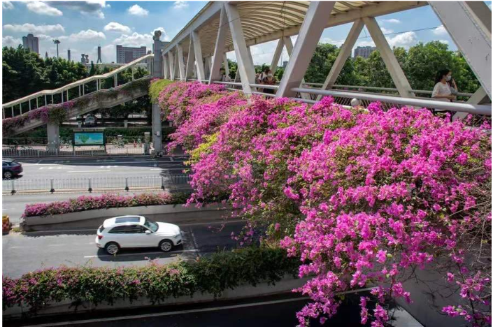 还是2003年,当时的三角梅在广州还是“两季有花,三季常绿”,花期为8月至10月。如今,已经升级为“四季有花,四季常绿”,练就了“开遍春夏与秋冬”的本领。目前,广州已完成426座约335公里长的桥梁绿化。