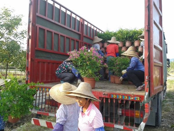 福建泉州市天桥绿化工程项目是名卉公司的重要工程技术合作项目。为顺利推进该项目的开展,9月下旬名卉公司负责人、工程技术人员及苗木部从化生产基地工人,提前着手项目前期准备工作。苗木部从化基地的技术管理人员和工人,不畏烈日高温,将工程所需的基质泥和簕杜鹃苗装车。据统计,已启运了500包基质泥、300包陶粒、600盆紫花勒杜鹃以及一些工程用具,确保了福建泉州天桥绿化工程如期开工。